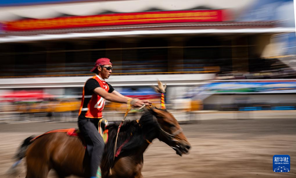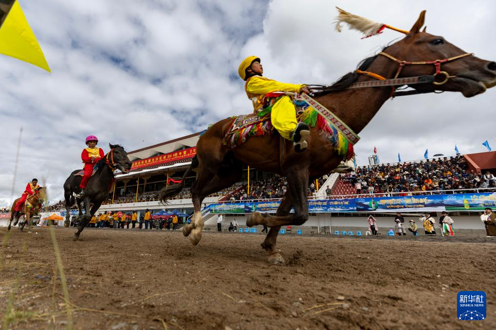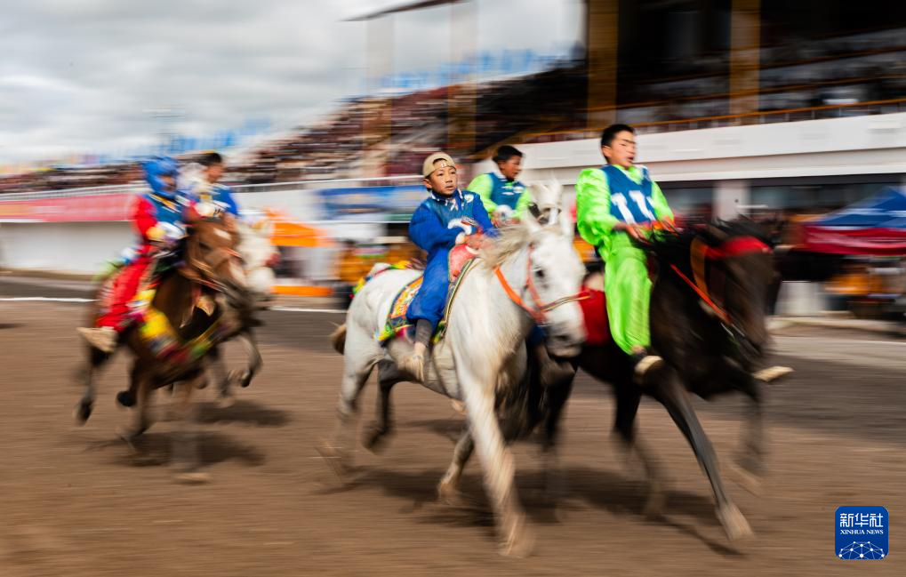 9月7日,騎手們在傳統(tǒng)大跑項(xiàng)目中馳騁。新華社記者 丁增尼達(dá) 攝