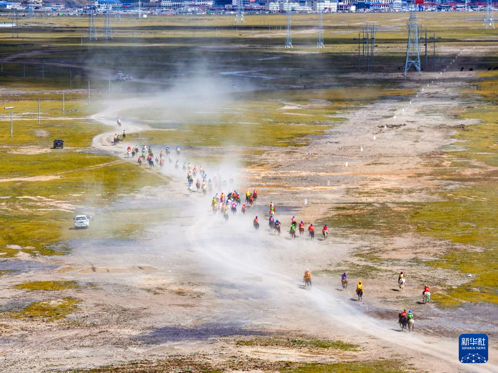 這是9月6日拍攝的恰青賽馬節(jié)比賽現(xiàn)場(無人機(jī)照片)。新華社記者 丁增尼達(dá) 攝