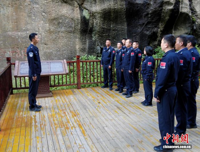 在大唐天竺使之銘陳列館,一塊承載千年歷史的摩崖石刻成為民警們的“第一課”。該陳列館以石刻為核心,通過珍貴文物、歷史文獻與場景復原,系統(tǒng)呈現了古代邊關在中外文明互鑒、邊疆治理中的關鍵作用。民警們仔細觀看展品,深刻感悟先輩開拓邊關、守護疆土的堅韌擔當。