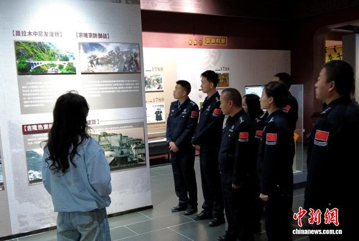 圖為吉隆出入境邊防檢查站組織民警在吉隆鎮(zhèn)參觀清軍護藏衛(wèi)國紀念館。肖富貴 攝