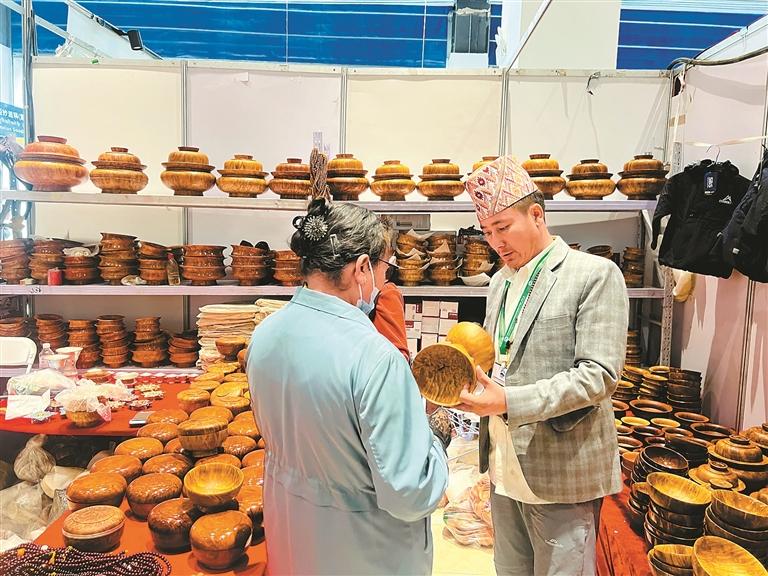 為期5天的博覽會現(xiàn)場熱鬧非凡。入口處,紅底黃字的“外貿(mào)優(yōu)品展銷”橫幅格外醒目:阿富汗商人正用不太流利的中文講解手工羊毛地毯的編織工藝;不丹展臺前,試穿傳統(tǒng)服飾的市民絡(luò)繹不絕;泰國膏藥展位的工作人員手持產(chǎn)品說明書,耐心地向顧客介紹使用方法;印度尼西亞展臺飄來咖啡焦香與伊朗藏紅花的辛香,幾位游客正輕嗅小瓷勺中的藏紅花;一旁的巴基斯坦玉石展臺前,觀眾正用手機(jī)拍攝玉飾的水波紋路,工作人員及時遞上放大鏡并介紹:“您看這紋路,是巴基斯坦特有的礦料形成的?!彪p語講解聲、詢價議價聲、游客贊嘆聲交織在一起,宛如一場生動的“國際市集”。