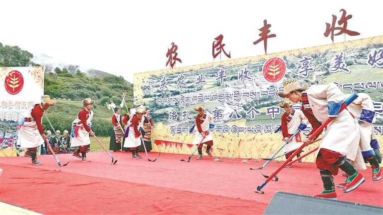 圖為洛扎縣第八個中國農(nóng)民豐收節(jié)慶?;顒游乃噮R演現(xiàn)場。記者 孫開遠(yuǎn) 攝