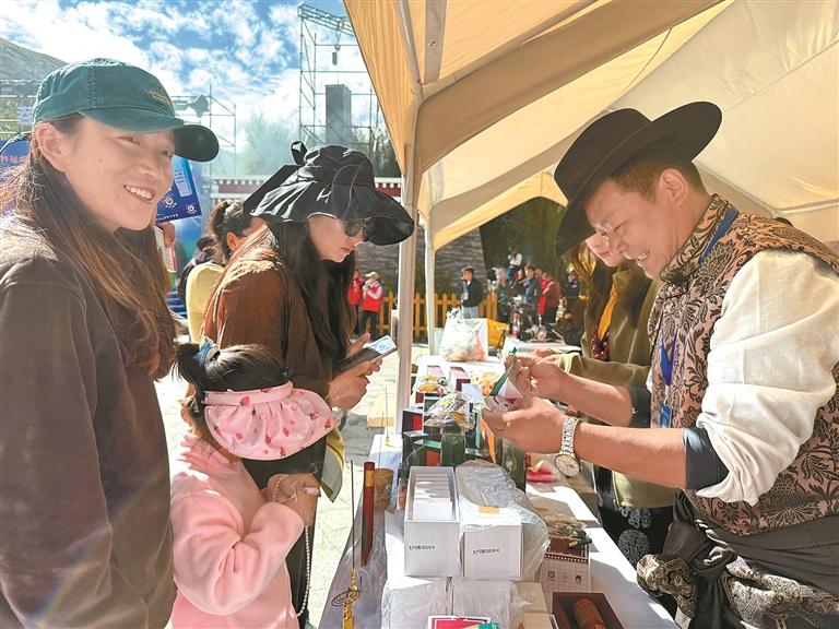 “今天我們帶來了6種藏香文創(chuàng)產(chǎn)品,分別有安神、提神、清潔空氣等系列,這些年我們除了在線下銷售,還要感謝尼木縣委、縣政府積極與線上各大平臺(tái)接洽,讓我們的藏香通過線上銷售,走出了尼木,讓北京、南京、天津等城市的客戶通過線上購買。所有藏香都是由縣委、縣政府組織的易地搬遷戶制作,這讓不少群眾不僅能就近就業(yè),還能照顧家里。特別感謝黨和政府對(duì)藏香保護(hù)和發(fā)展所做的各項(xiàng)工作?!笨h級(jí)非物質(zhì)文化遺產(chǎn)傳承人洛桑旺堆在活動(dòng)現(xiàn)場說。