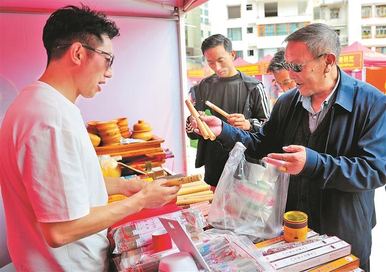特色產(chǎn)品展銷柜臺(tái),市民正在選購洛隆藏香。記者 平措朗加 溫凱 攝