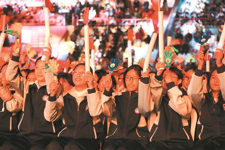 閉幕式公益演出現(xiàn)場熱情洋溢的學(xué)生們。記者 平措朗加 溫凱 攝
