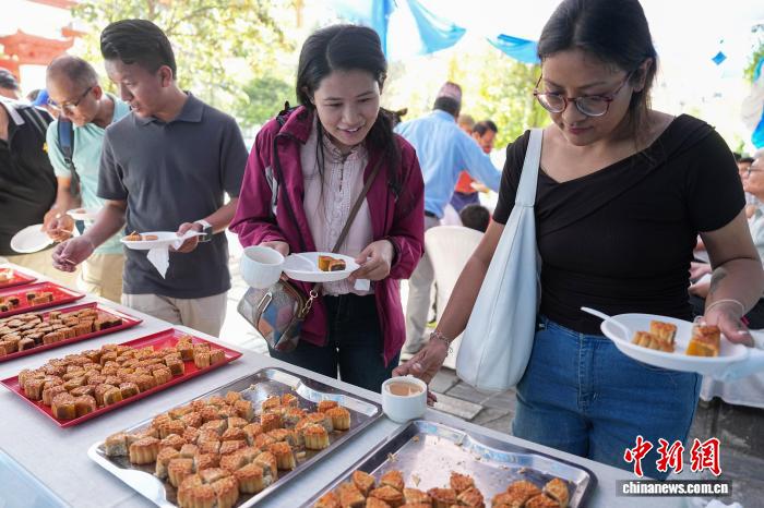 9月23日,尼泊爾中國文化中心在加德滿都舉行中秋主題活動(dòng),尼泊爾友人挑選多種口味的中式月餅。 中新社記者 崔楠 攝