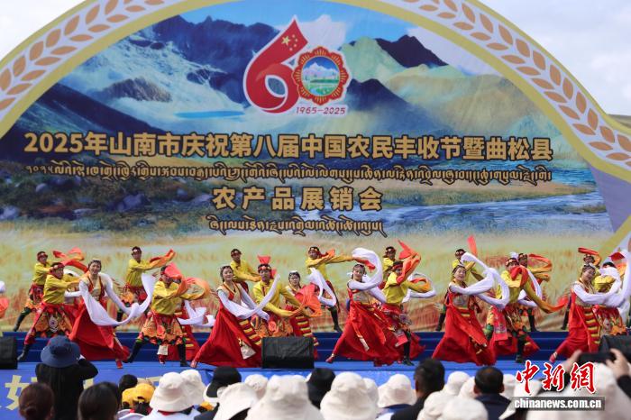 9月22日,2025年山南市農(nóng)民豐收節(jié)在曲松縣足球場啟幕,同期舉辦的農(nóng)產(chǎn)品展銷會(huì)熱鬧非凡。舞臺上傳統(tǒng)藏戲與現(xiàn)代歌舞輪番上演,臺下觀眾掌聲不斷;場外170余家曲松縣、加查縣等地商戶設(shè)攤,藏豬肉、蟲草、白域牛奶面等農(nóng)特產(chǎn)品琳瑯滿目,網(wǎng)紅主播還通過直播帶貨將好物推向全國。作為半農(nóng)半牧縣,曲松縣糧食產(chǎn)量連續(xù)四年超8000噸,2025年預(yù)計(jì)達(dá)8100噸,2021至2024年農(nóng)牧民人均可支配收入從17922元(人民幣,下同)增至22848元,脫貧群眾收入增速連續(xù)四年超7%。