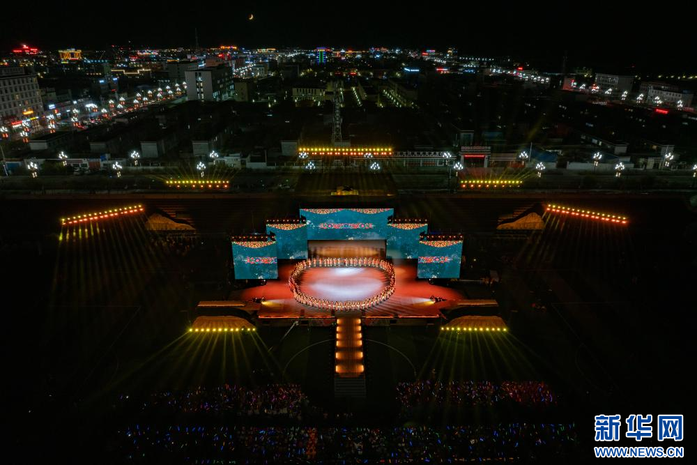 9月26日,第九屆象雄文化旅游節(jié)開(kāi)幕式現(xiàn)場(chǎng)(無(wú)人機(jī)照片)。新華網(wǎng) 旦增努布 攝