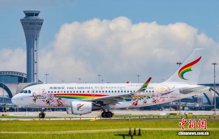 圖為“林芝文旅號(hào)”主題航班落地林芝米林機(jī)場(chǎng)。林芝市文化和旅游局 供圖