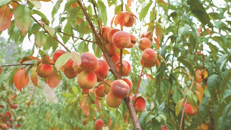西藏園潤農業(yè)有限公司冬桃種植基地里成熟的冬桃。通訊員 陳喬 頓珠多杰 攝