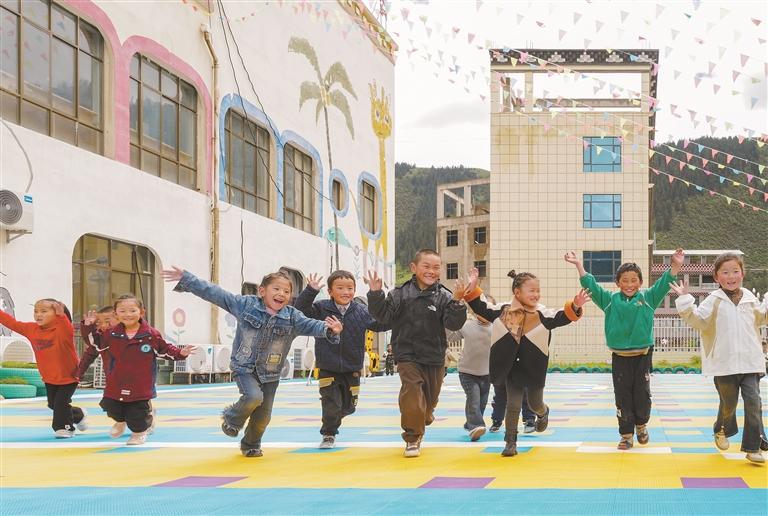 圖為昌都市類烏齊縣重慶雙語(yǔ)幼兒園的孩子們?cè)谡n間快樂地玩耍。記者 丹增群培 攝 (資料圖片)