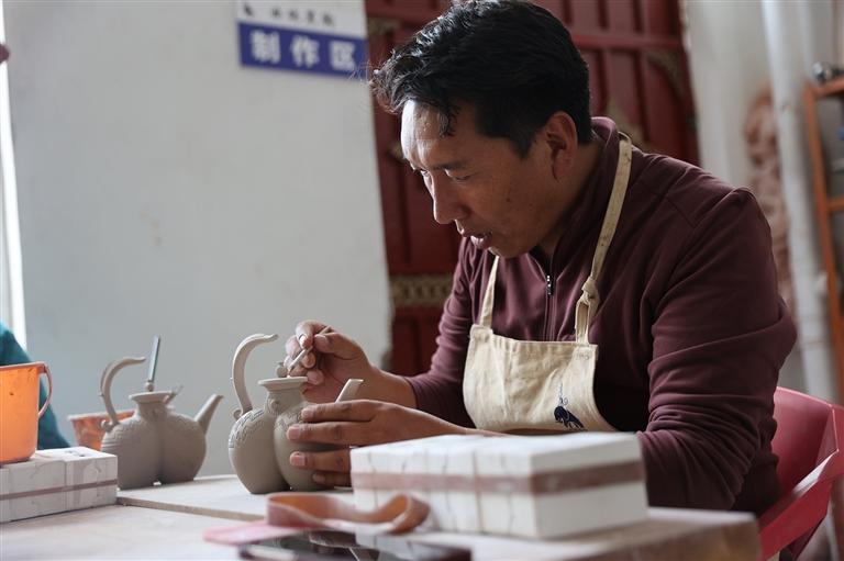 公司實行“按勞計酬”的薪酬制度,為員工提供了穩(wěn)定的收入保障。這份“家門口”的可觀收入,讓員工們穩(wěn)穩(wěn)撐起了家庭的幸福生活?!耙郧霸诩曳N地,收入沒著落,現(xiàn)在在公司做黑陶,不僅學到了一門手藝,每個月還有固定工資,日子越過越有盼頭了!”作為曲珠的第一批學生,扎西如今已能獨立設計制作復雜的黑陶茶具,月薪穩(wěn)定在5000元,他的感慨道出了所有員工的心聲。這些扎根鄉(xiāng)土的手藝人,不僅用雙手改變了自身生活,更因?qū)@門技藝的熱愛與堅守,成為察雅黑陶傳承路上的重要力量。