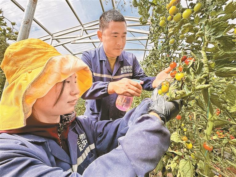 圖為昌都市貢覺縣現(xiàn)代農(nóng)業(yè)產(chǎn)業(yè)園區(qū)內(nèi),技術(shù)員在大棚內(nèi)教授當(dāng)?shù)厝罕娦》逊N植技術(shù)。記者 白瑪澤旺 次仁平措 攝