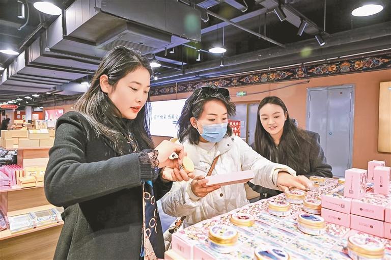圖為消費者在展示中心內購買特色產品。記者 楊小娟 攝