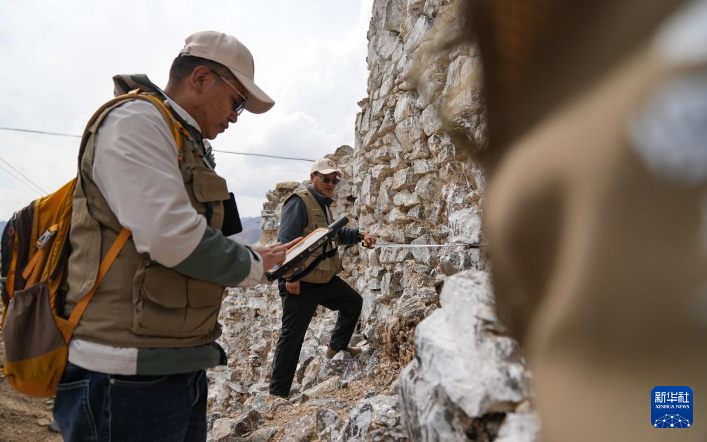 普查隊(duì)員在西藏墨竹工卡縣曲果崗塔群遺址現(xiàn)場(chǎng)開(kāi)展數(shù)據(jù)采集。(2024年4月11日 攝) 新華社記者 晉美多吉 攝