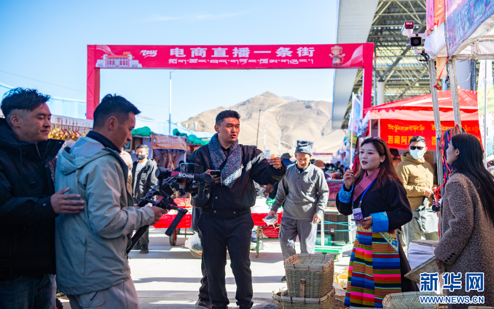 12月1日,一位電商主播在西藏自治區(qū)山南市第45屆雅礱物資交流會現(xiàn)場介紹產(chǎn)品。新華網(wǎng) 旦增努布 攝