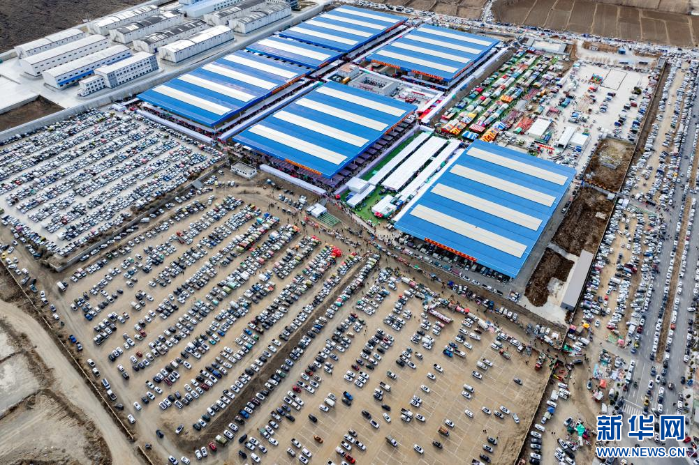 12月1日,西藏自治區(qū)山南市第45屆雅礱物資交流會現(xiàn)場(無人機照片)。新華網(wǎng) 旦增努布 攝