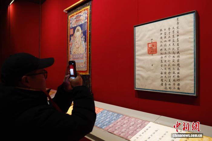 2月9日,由故宮博物院聯(lián)合西藏自治區(qū)文物局等多家文博單位共同舉辦的“萬(wàn)法歸一:薩迦寺歷史文化與藝術(shù)”展在北京開幕。圖為嘉賓參觀展覽?!≈行律缬浾?韓海丹 攝