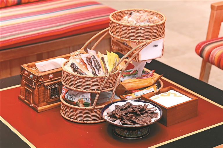 繼續(xù)前行,展館深處的咖啡廳飄出陣陣異香——酥油拿鐵、牦牛奶拿鐵、藏式甜茶、磚茶,這些融合了西藏元素的飲品被大家捧在手里,像是把雪山草原“裝進(jìn)了”咖啡杯。重慶妹子小王抿了一口酥油拿鐵,挑眉笑道:“很醇香,有點(diǎn)咸,這是西藏的味道?!?/p>