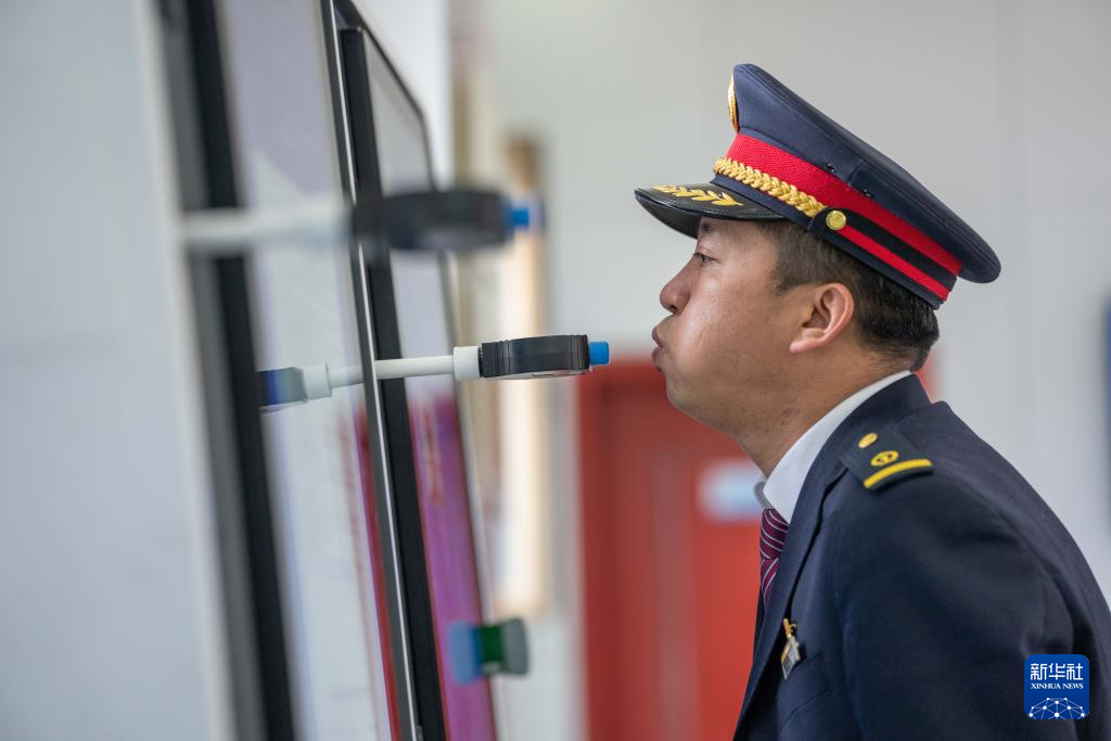2月14日,斯朗旺扎出勤前進(jìn)行酒精測(cè)試。新華社記者 旦增尼瑪曲珠 攝?