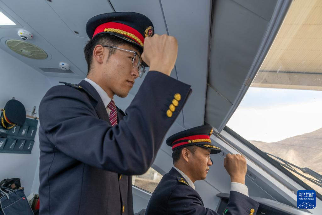 2月14日,斯朗旺扎(右)機(jī)班在呼喚確認(rèn)信號(hào)。新華社記者 旦增尼瑪曲珠 攝