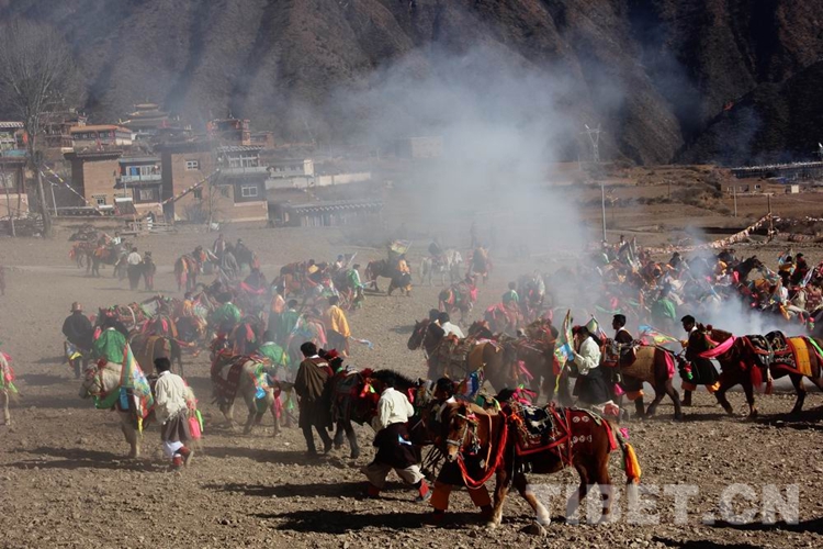 圖為四川省甘孜藏族自治州新龍縣群眾歡度“藏歷十三節(jié)” 攝影:拉加當(dāng)周