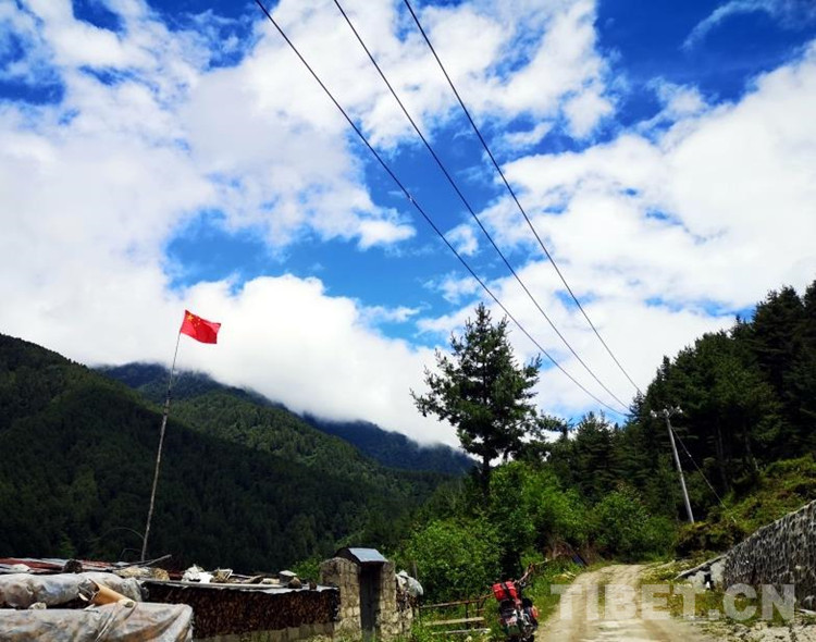 圖為現(xiàn)在的西藏自治區(qū)日喀則市亞?wèn)|縣縣域內(nèi)隨處可見(jiàn)鮮艷的五星紅旗