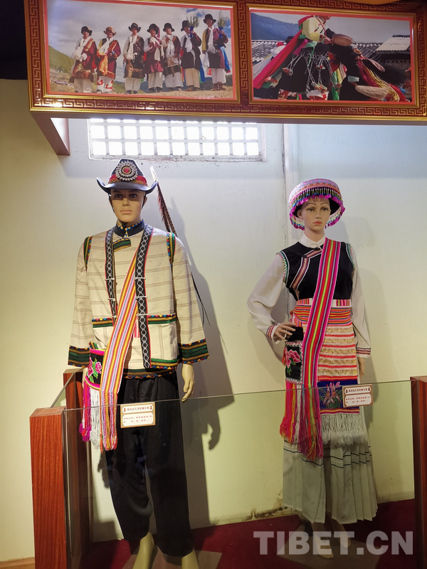 圖為2019年塔城熱巴傳統(tǒng)展示館中陳列的傈僳族服飾。云南迪慶塔城鎮(zhèn)境內(nèi)居住著藏族、納西族(其中有隸屬納西族支系的瑪里瑪薩人)、傈僳族、白族、普米族等8個(gè)民族。攝影:夏炎