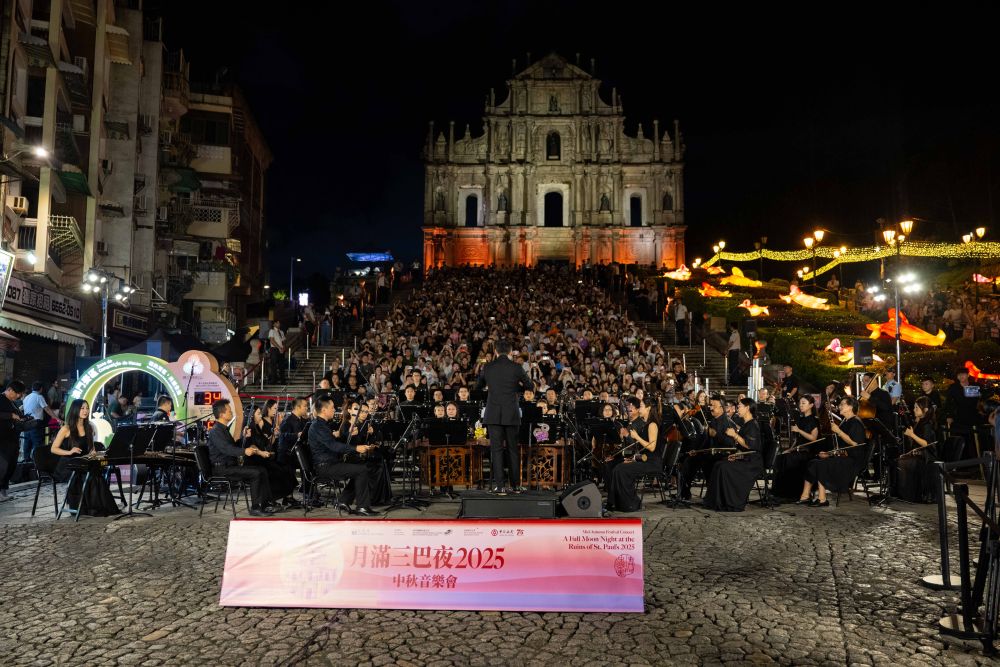 10月6日拍攝的在大三巴牌坊舉行的“月滿三巴夜2025”中秋音樂(lè)會(huì)。新華社發(fā)(張金加攝)