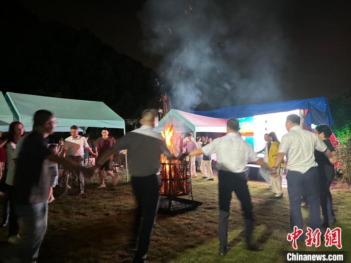 兩岸青年參加篝火晚會(huì)迎中秋。郭其鈺 攝
