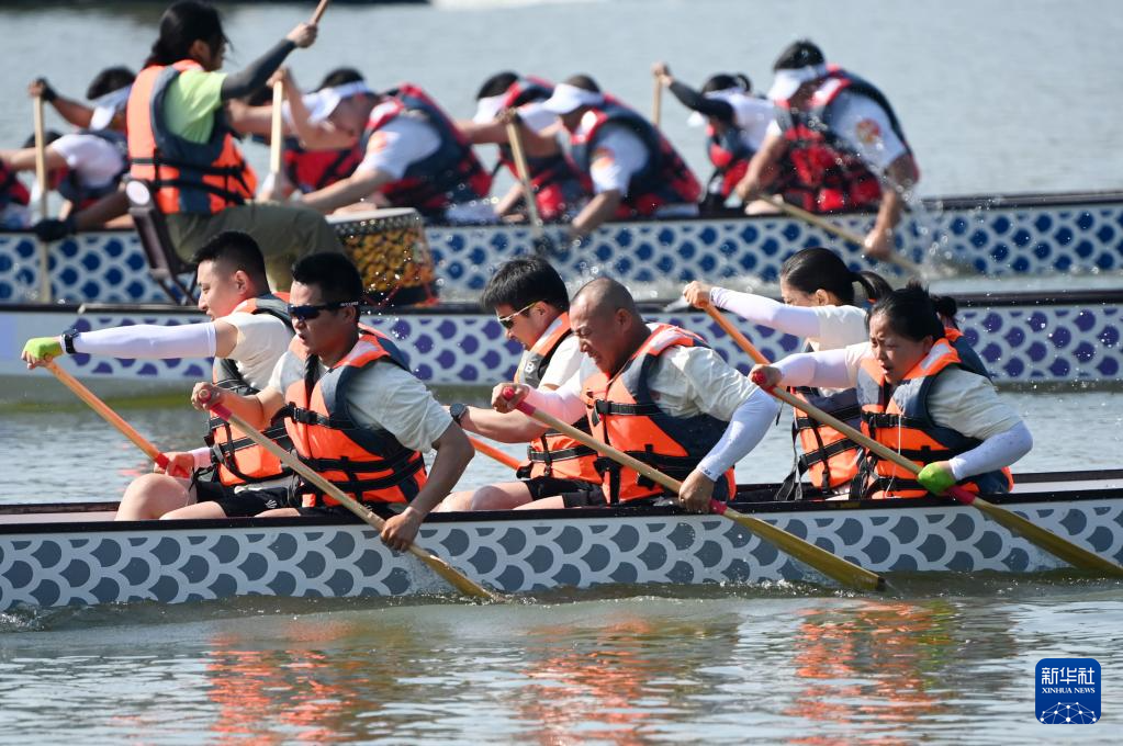 當(dāng)日,2025年天津港保稅區(qū)龍舟大賽在天津空港經(jīng)濟(jì)區(qū)西湖舉行,轄區(qū)內(nèi)的20支企事業(yè)單位代表隊同臺競技,奮楫競渡,迎接端午節(jié)的到來。