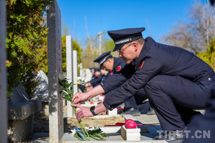 西藏日喀則邊境管理支隊(duì)民警向革命烈士敬獻(xiàn)鮮花