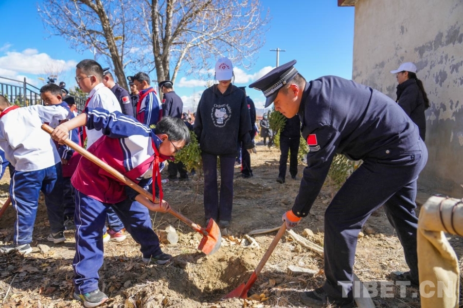 西藏日喀則邊境管理支隊(duì)組織民警和少先隊(duì)員清掃烈士陵園周邊環(huán)境