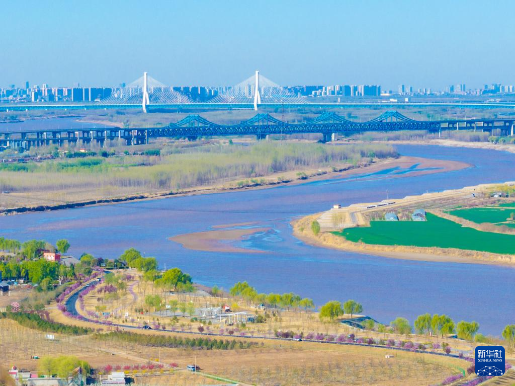 4月2日拍攝的黃河山東濟南段兩岸風景(無人機照片)。