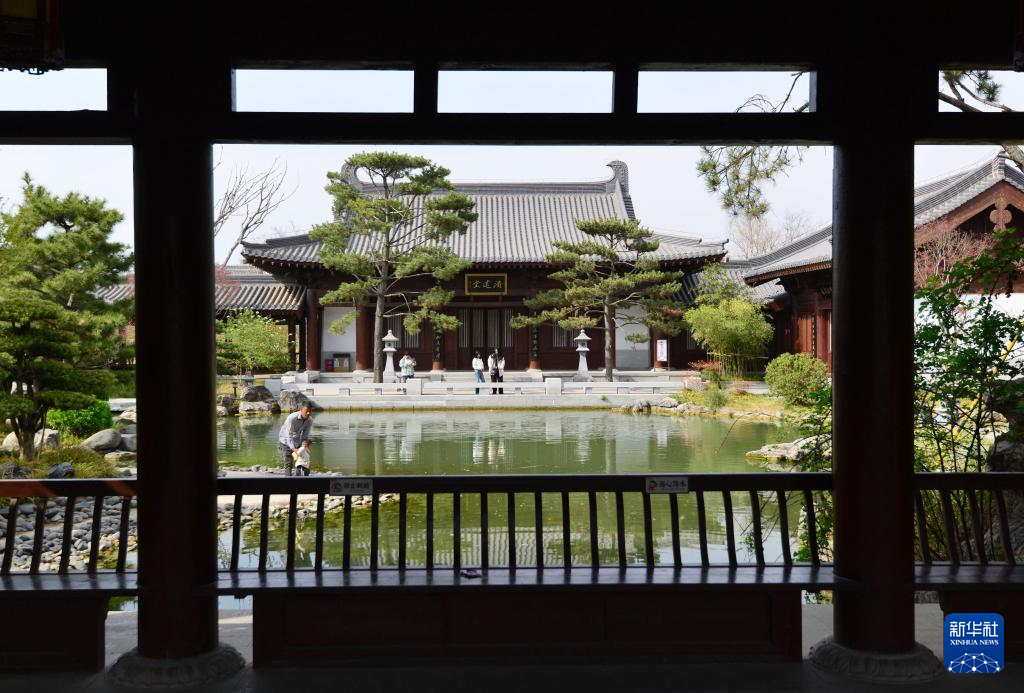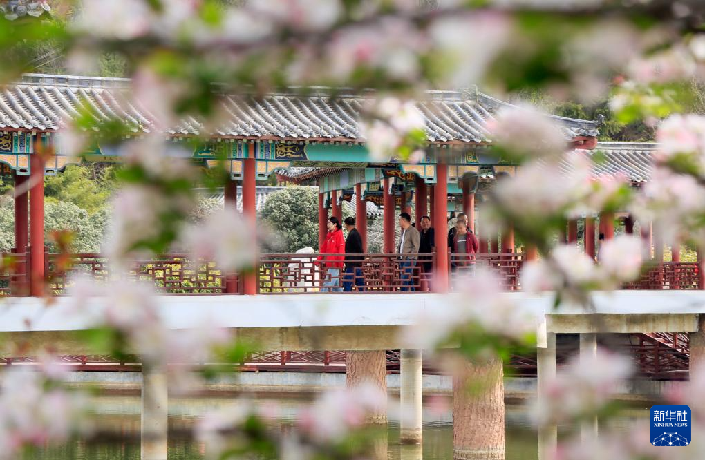 4月1日,游客在河南省洛陽市汝陽縣蔡店鄉(xiāng)杜康村杜康造酒遺址公園賞花觀光。