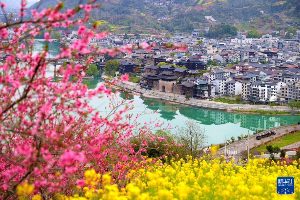 4月1日,游客在重慶市黔江區(qū)濯水鎮(zhèn)烏楊社區(qū)黃桃基地賞花游玩。