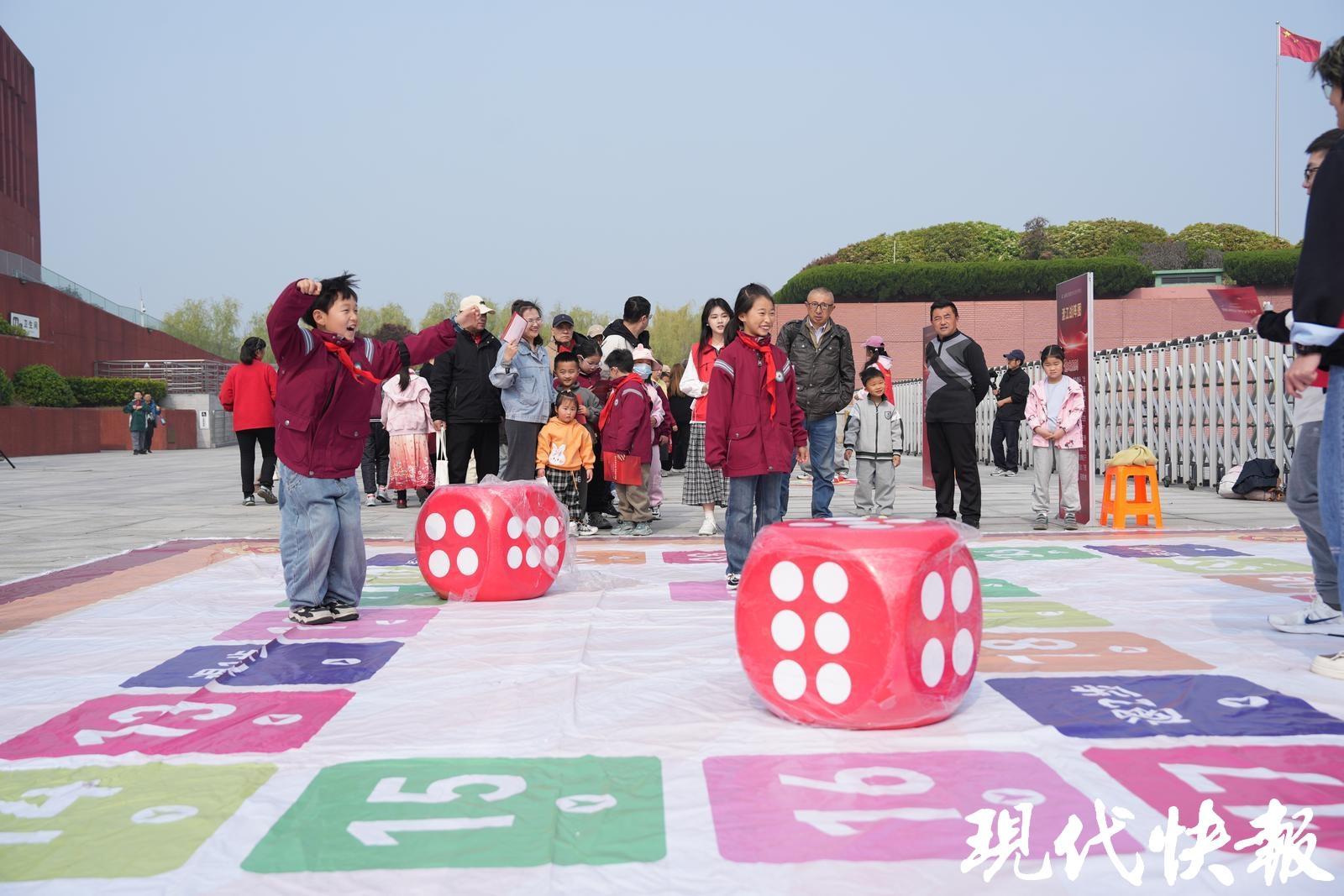 南京的渡江勝利紀(jì)念館也熱鬧非凡。江蘇、浙江、上海、安徽四地的14家渡江戰(zhàn)役紀(jì)念館(地)合作聯(lián)盟單位,以及南京地區(qū)部分紅色場(chǎng)館和社會(huì)團(tuán)體,共設(shè)近20個(gè)紅色科普、文博宣傳與文創(chuàng)展位。字影追蹤戰(zhàn)、冰壺突圍記、沙包投擲戰(zhàn)……孩子們玩得不亦樂(lè)乎。