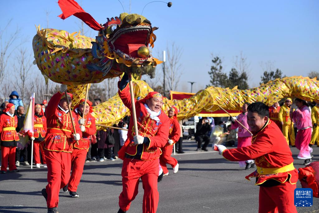 2月9日,河北省石家莊市元氏縣群眾表演舞龍。