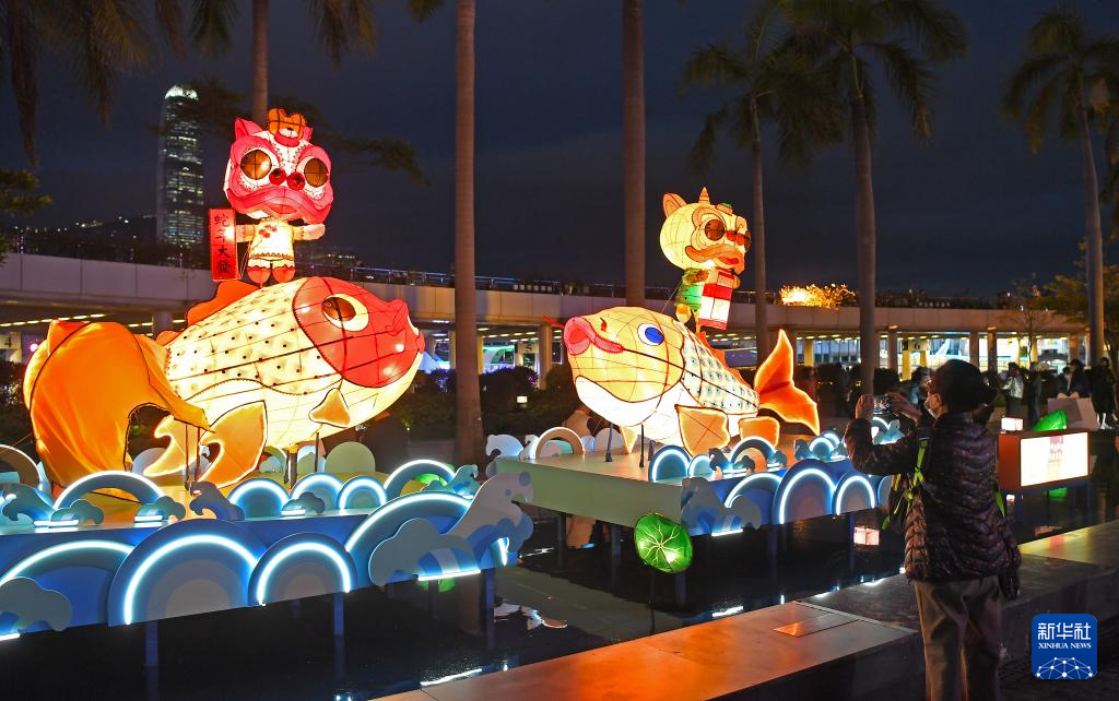 2月11日,人們在香港尖沙咀拍攝彩燈。