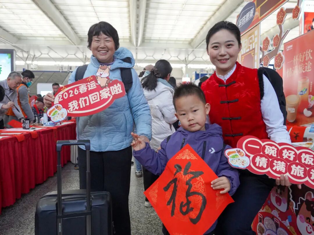 合肥南站候車大廳里,處處洋溢著濃濃的年味。