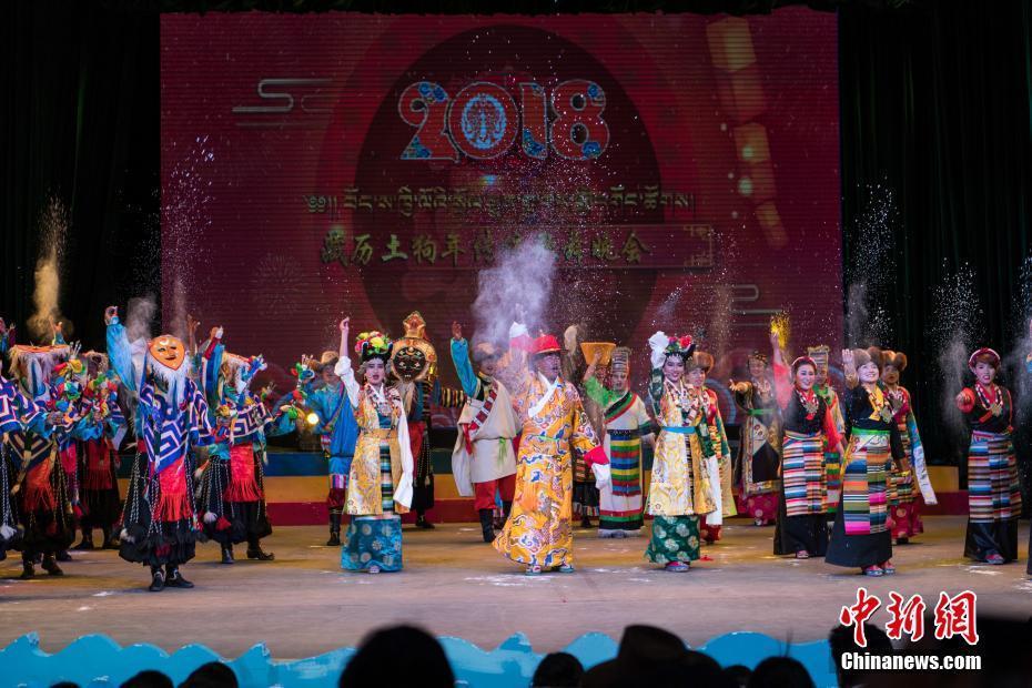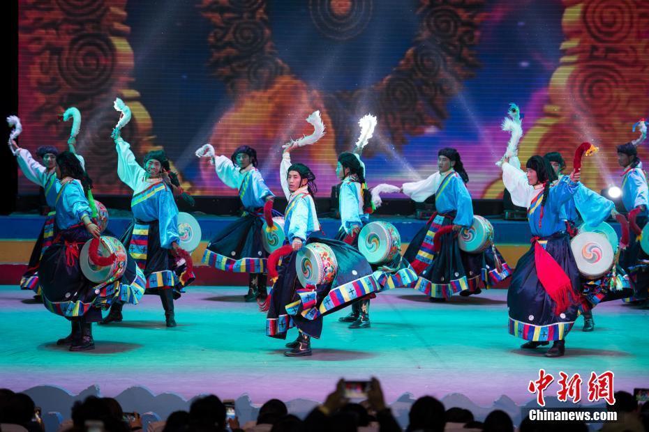 2月10日,隨著2018年春節(jié)和藏歷新年的日益臨近,西藏拉薩的節(jié)日氣氛越來越濃。當(dāng)晚一場傳統(tǒng)歌舞晚會,提前為拉薩民眾送去新春的祝福。晚會以傳統(tǒng)藏戲、歌舞、小品等表演形式,把藏民族古老的藏戲、卓舞、鍋莊等非物質(zhì)文化遺產(chǎn)搬到了新年舞臺。圖為中國國家級非物質(zhì)文化遺產(chǎn)《卓舞》表演。中新社記者 何蓬磊 攝