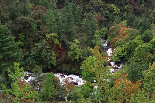 我們沿著一條巨大的峽谷蜿蜒向南行駛,經(jīng)過五六個(gè)小時(shí)的行程,經(jīng)歷海拔2000米的巨大落差,便到達(dá)了勒布溝。勒布溝有大片的原始森林,生長著松、柏、樺、杉、竹和“稱巴”樹,其中尤以“稱巴”名貴,其紋密質(zhì)堅(jiān),過去常被藏傳佛教寺院用做雕刻經(jīng)板的材料。野生藥材有數(shù)十種之多,如高山上的雪蓮、蟲草,林中的三七、天麻,晨霧中的門隅勒布溝景色。野生動(dòng)物資源豐富,成群的野豬和猴子常在離村莊不遠(yuǎn)的林中活動(dòng),還有麝、麂、小熊貓、野牛、雪豬、狐貍、狼和豹等。雪山、森林、草地、河流、田園、牧場(chǎng),是勒布溝最經(jīng)典的風(fēng)景,由此,構(gòu)成了一幅絕美的、田園牧歌式的門巴族風(fēng)情山水畫。
