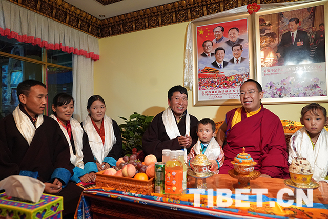 打掃庭院、布置藏式客廳、擺放各種水果和飲品……為了恭迎十一世班禪的到來,達(dá)瓦一家一大早便忙碌起來。他說,“班禪仁波切來到我家,對于我們家來說是歷史性的時(shí)刻,是我們?nèi)胰诵迊淼母7帧!?/p>