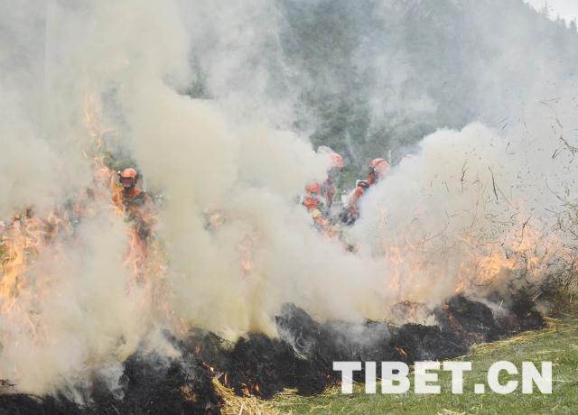 圖為濃煙四起,官兵們沉著“應(yīng)戰(zhàn)”。