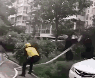 當(dāng)保安的周明洪上前營救