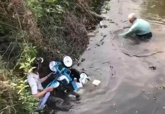 不慎連人帶車墜入河中