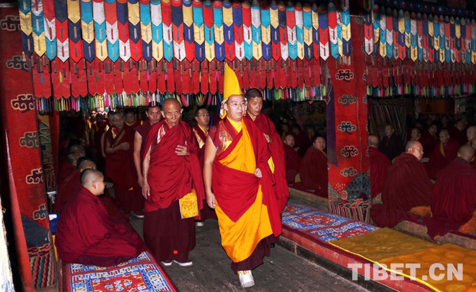 班禪大師步入塔爾寺大經(jīng)堂。
