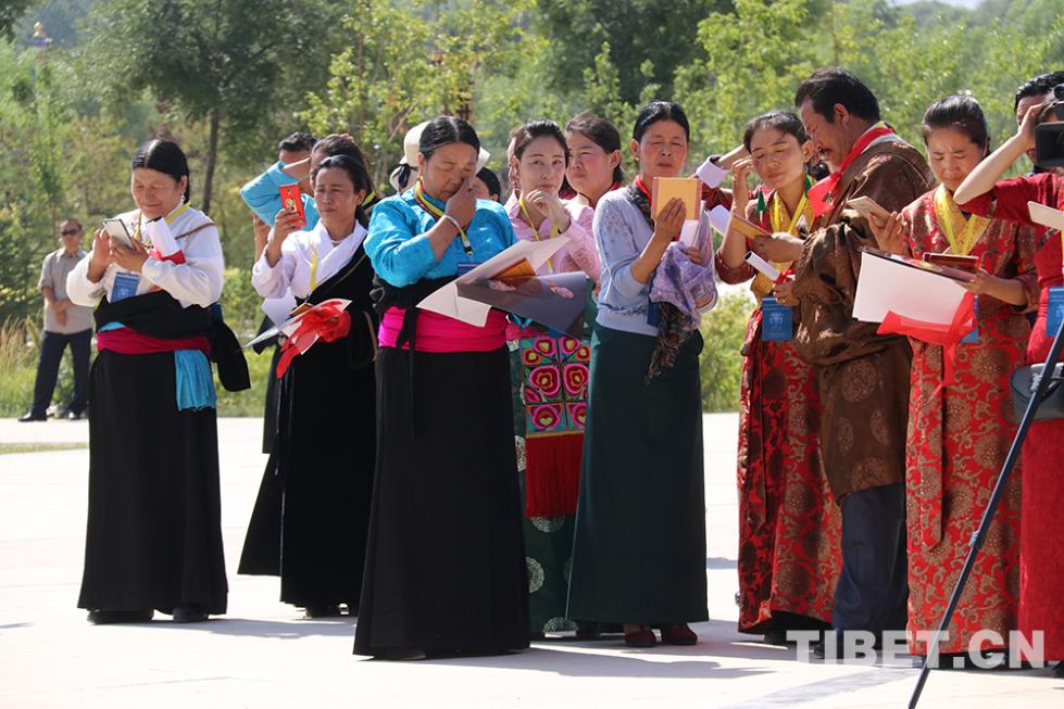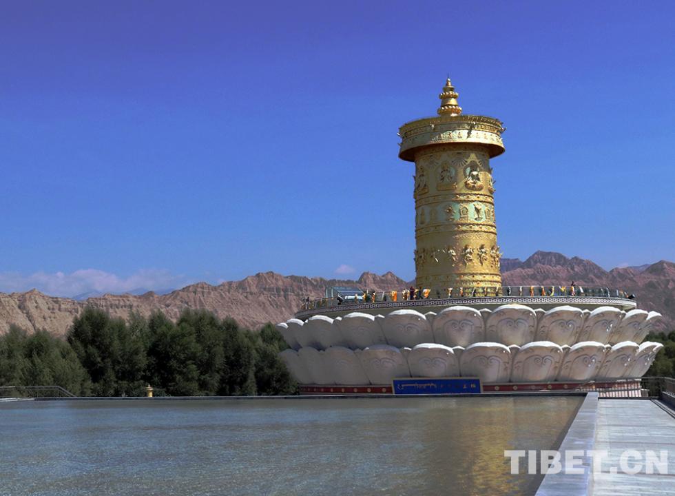 最后,班禪大師一行來(lái)到位于黃河岸邊的“中華福運(yùn)輪”,“中華福運(yùn)輪”轉(zhuǎn)經(jīng)輪主體高42米,于2012年獲頒吉尼斯世界紀(jì)錄?!爸腥A福運(yùn)輪”坐北向南,由黃河民俗博物館、倒影池、轉(zhuǎn)經(jīng)塔三部分組成。班禪大師一行,背對(duì)著翻騰著青色波濤的黃河坐下,面對(duì)著“中華福運(yùn)輪”,班禪帶領(lǐng)僧眾念誦祈愿經(jīng)文,祈禱世界和平、國(guó)泰民安、五谷豐登、眾生幸福。(中國(guó)西藏網(wǎng)文、圖/袁星宇)