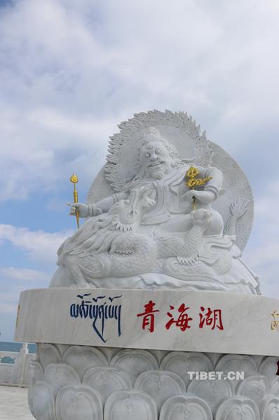 十一世班禪在青海湖邊的祭湖臺前祈福。