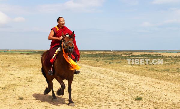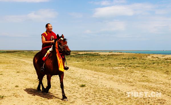 十一世班禪今年二十七歲,風(fēng)華正茂青春時。大部分時候人們看到他,都是在進行莊嚴(yán)肅穆的法事、會議、拜見、會見等活動,大家看到的是大師的文質(zhì)彬彬、溫文爾雅。大師的談吐也展示出廣博深邃的知識和高雅的修養(yǎng)。但是今天他策馬奔馳、衣袂飄飄地出現(xiàn)在青海湖邊的景象,讓大家又似曾相識。對了,十世班禪也是愛馬如癡,曾經(jīng)在藏區(qū)考察調(diào)研時,經(jīng)常騎馬馳騁,也曾飼養(yǎng)過很多名馬。